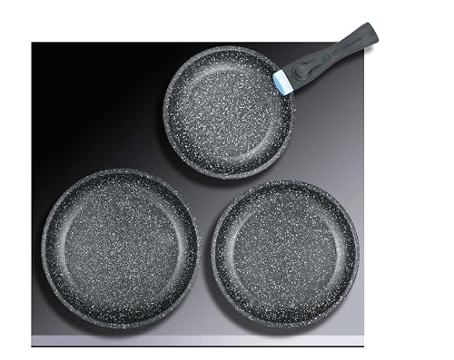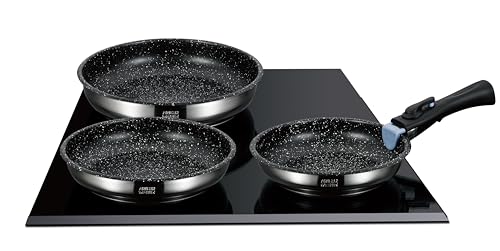 - Spatiable et Facile à Stocker : Conçu avec une poignée amovible, ce lot de 3 poêles prend peu de place dans vos placards ou tiroirs. Économisez de précieux espace!