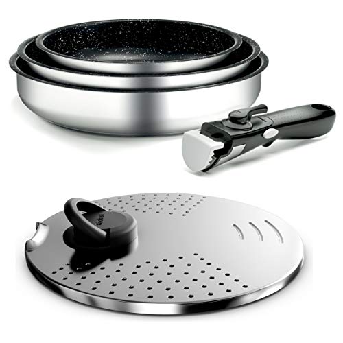 – Revêtement anti-adhérant (effet pierre) sans PFOA, cuisine plus saine sans matière grasse ajoutée.