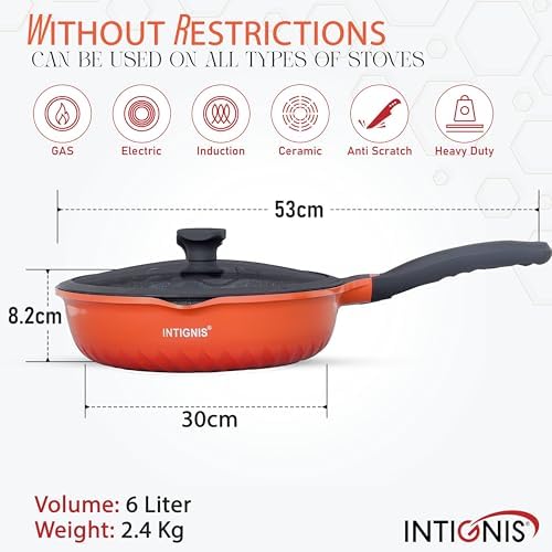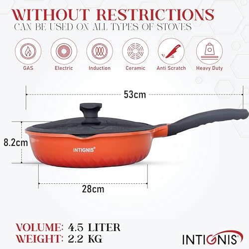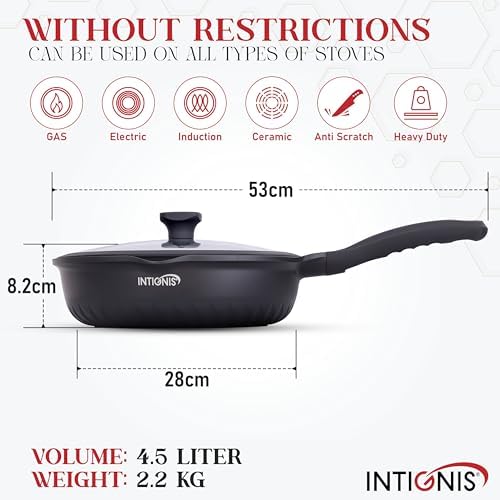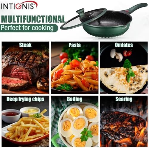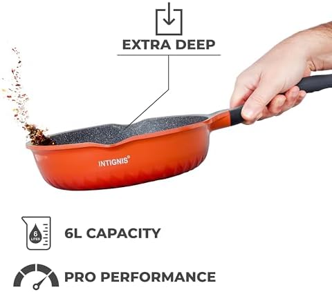 🥘 GRANDE CAPACITÉ & PRATIQUE – Parfaite comme poêle à frire profonde ou casserole sauteuse, idéale pour mijoter, griller ou préparer des plats familiaux, offrant suffisamment d’espace pour cuisiner en masse.