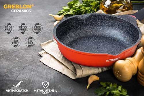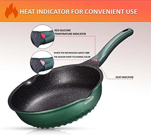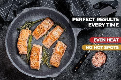 🥘 REVÊTEMENT EN PIERRE GREBLON – REVÊTEMENT ANTIADHÉSIF ALLEMAND ULTRA-DURABLE, SANS PFOA. Cette poêle en pierre anti-rayures offre une cuisson saine et sans huile, garantissant un repas délicieux sans.addition d’huile inutile.