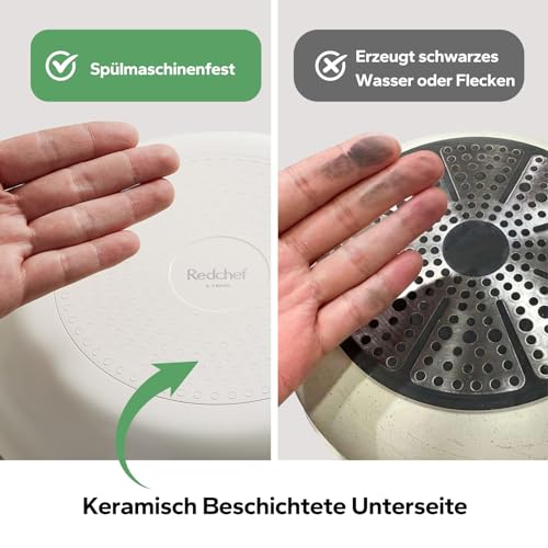 Sécurité et santé: Les casseroles et poêles Redchef sont exemptes de dangers pour les familles avec enfants. Leur revêtement intérieur en céramique non toxique, exempt de PTFE, PFAS, et PFOA, même des produits chimiques nocifs, assure quarante pour cent de sécurité pour vous et votre famille, ainsi que pour l’environnement.