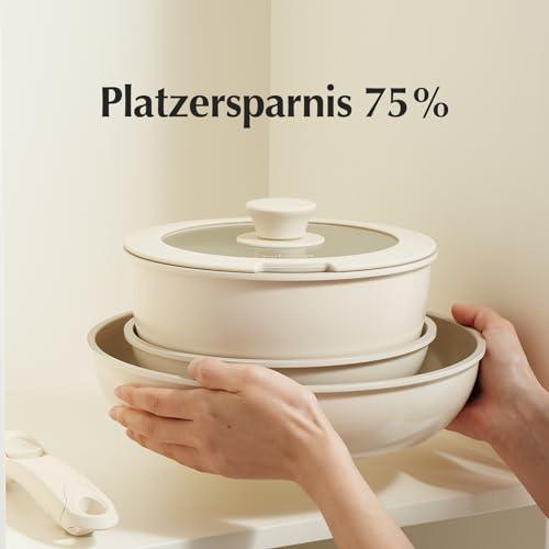 Espace gagné: Ces casseroles et poêles peuvent être empilés pour gagner 75% d’espace utile. Grâce aux poignées amovibles, vous pouvez les ranger de manière ordonnée, permettant l’optimisation du rangement dans les cuisines compacts, idéales pour les camping-cars ou mobile-homes.
