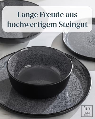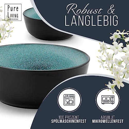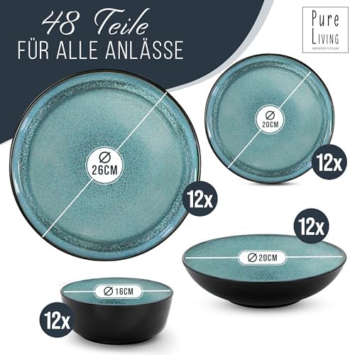 Service de vaisselle en grès Pure Living Ibiza, 24 pièces, bleu pétrole foncé, adapté au lave-vaisselle et au micro-onde