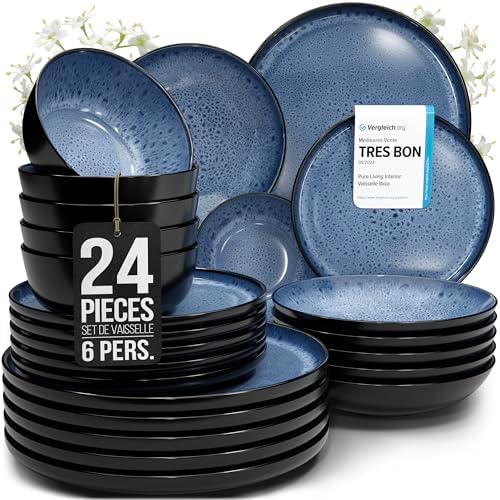 Soyez le premier à laisser votre avis sur “Service de vaisselle en grès Pure Living Ibiza, 24 pièces, bleu pétrole foncé, adapté au lave-vaisselle et au micro-onde”